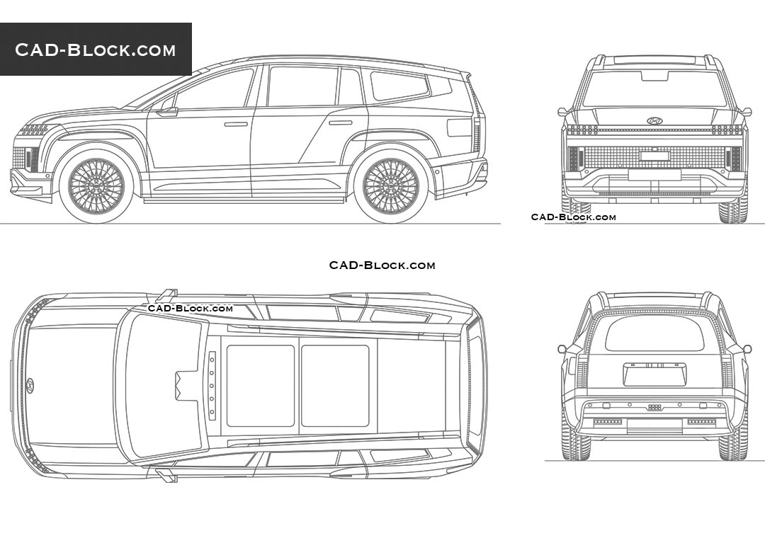 A modern electric flagship from Hyundai in DWG format. The drawing is made with high precision and captures all the key body lines — from the massive front end to the aerodynamic rear silhouette. The IONIQ 9 combines clean geometry with a futuristic style, making it an excellent asset for designers, architects, and visualizers working on eco-friendly transportation projects of the future.